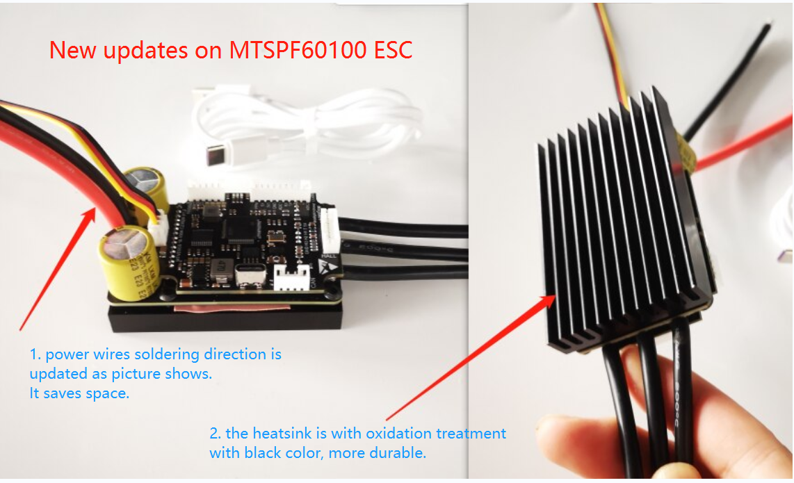 | Firmware | Updatable | Cooling fin | Final standard ESC will come with cooling fin |